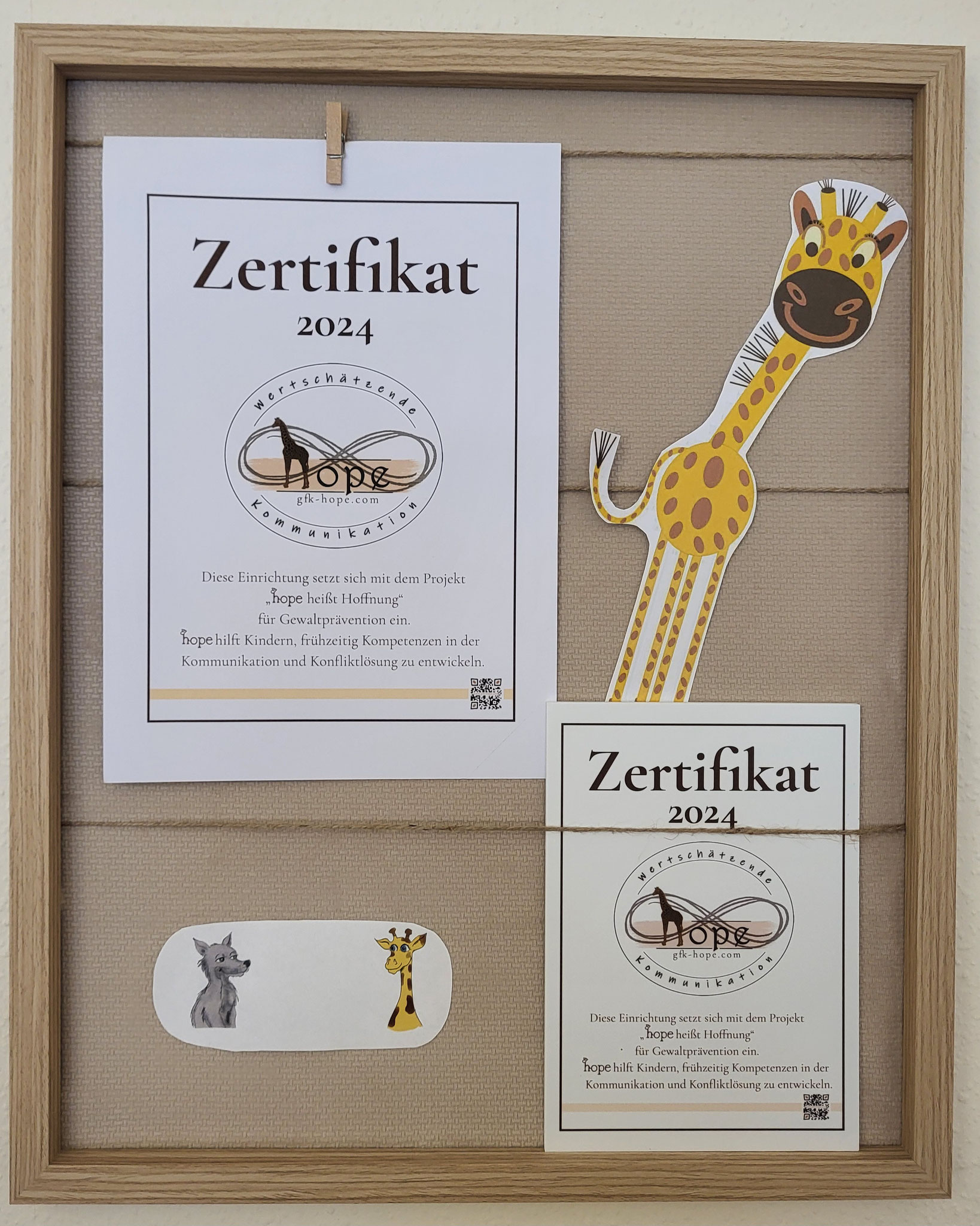 Anschließend lernen die Kinder in ihrer Einrichtung gemeinsam mit den Fachkräften innerhalb eines individuellen Zeitraums die vier Schritte der "Gewaltfreien Kommunikation" kennen. Dies geschieht durch Spiele, Übungen, Lieder und Entdeckungen. Mithilfe dieser vier Schritte entwickeln die Kinder eine gemeinsame Strategie, den "Giraffentanz", um in Konfliktsituationen eine einfache und klare Vorgehensweise anwenden zu können. Nach anfänglicher Unterstützung durch die Fachkräfte können die Kinder diese Methode selbstständig anwenden, was zu einer Entspannung und Erleichterung im Alltag der Einrichtung führt.