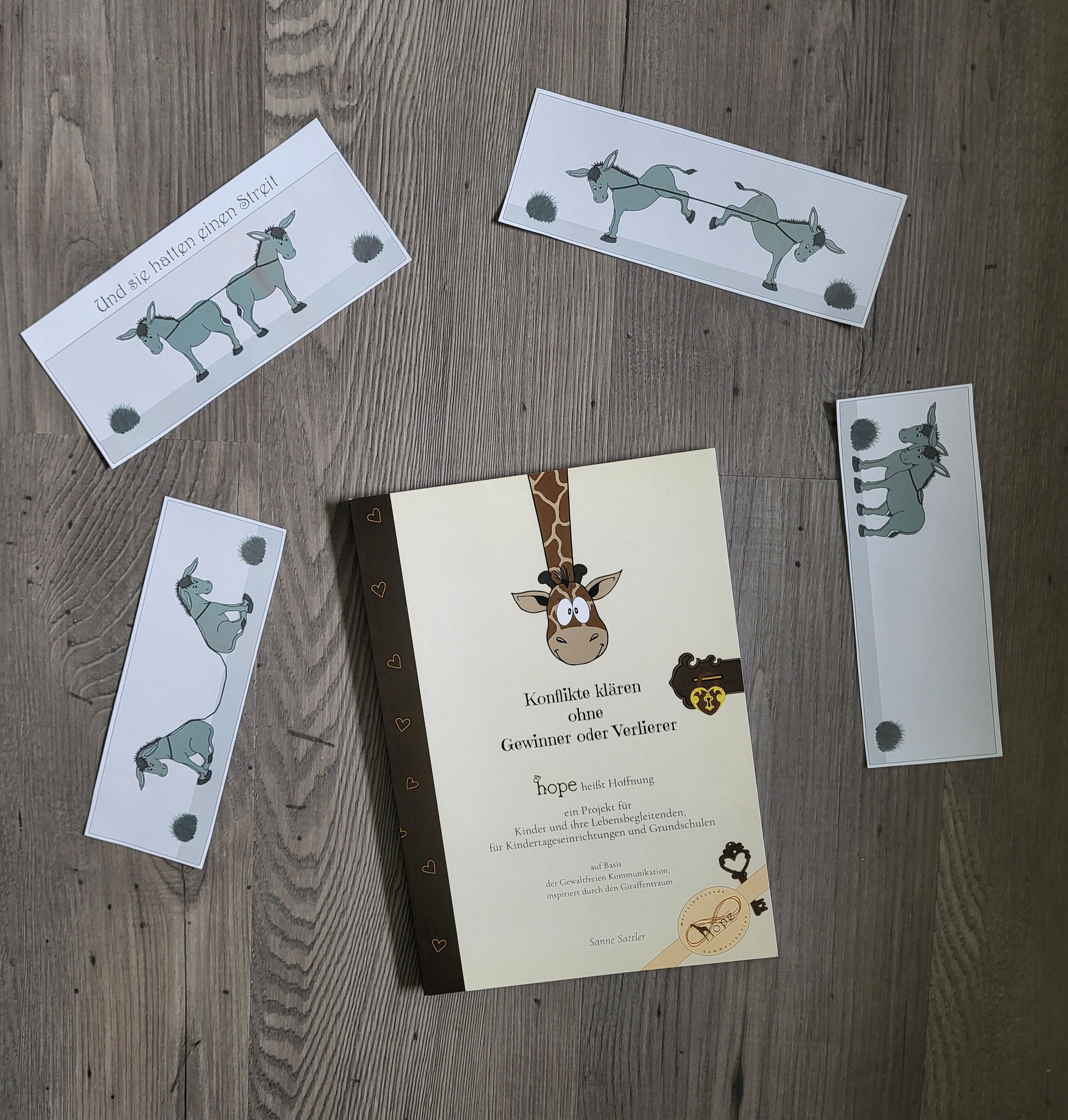 Gleichzeitig möchte ich Ihnen das Schatzbuch "Konflikte klären ohne Gewinner oder Verlierer" vorstellen. Es enthält altersgerechtes Arbeitsmaterial für Kinder und lässt sich spielerisch in den Einrichtungsalltag integrieren.